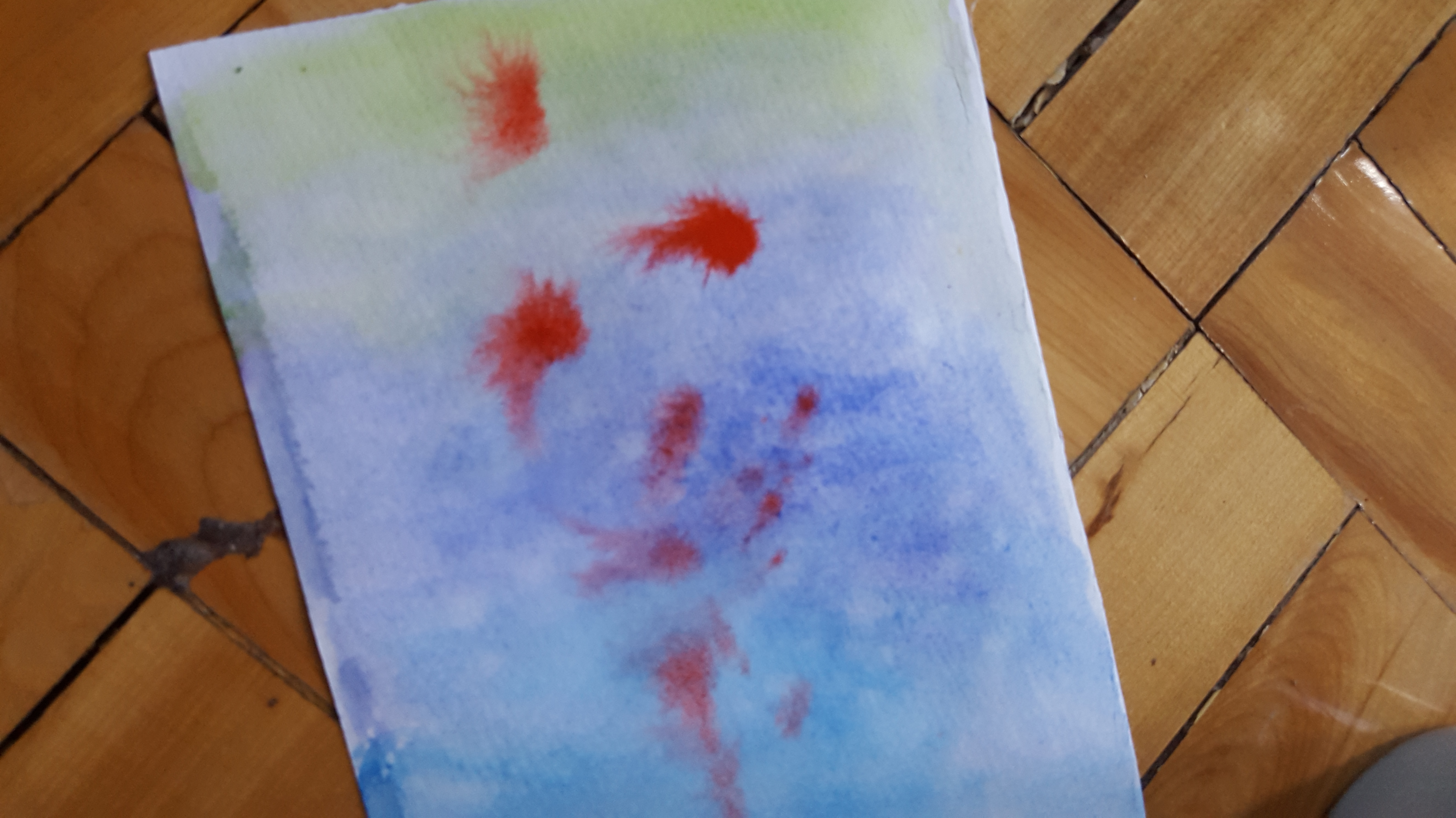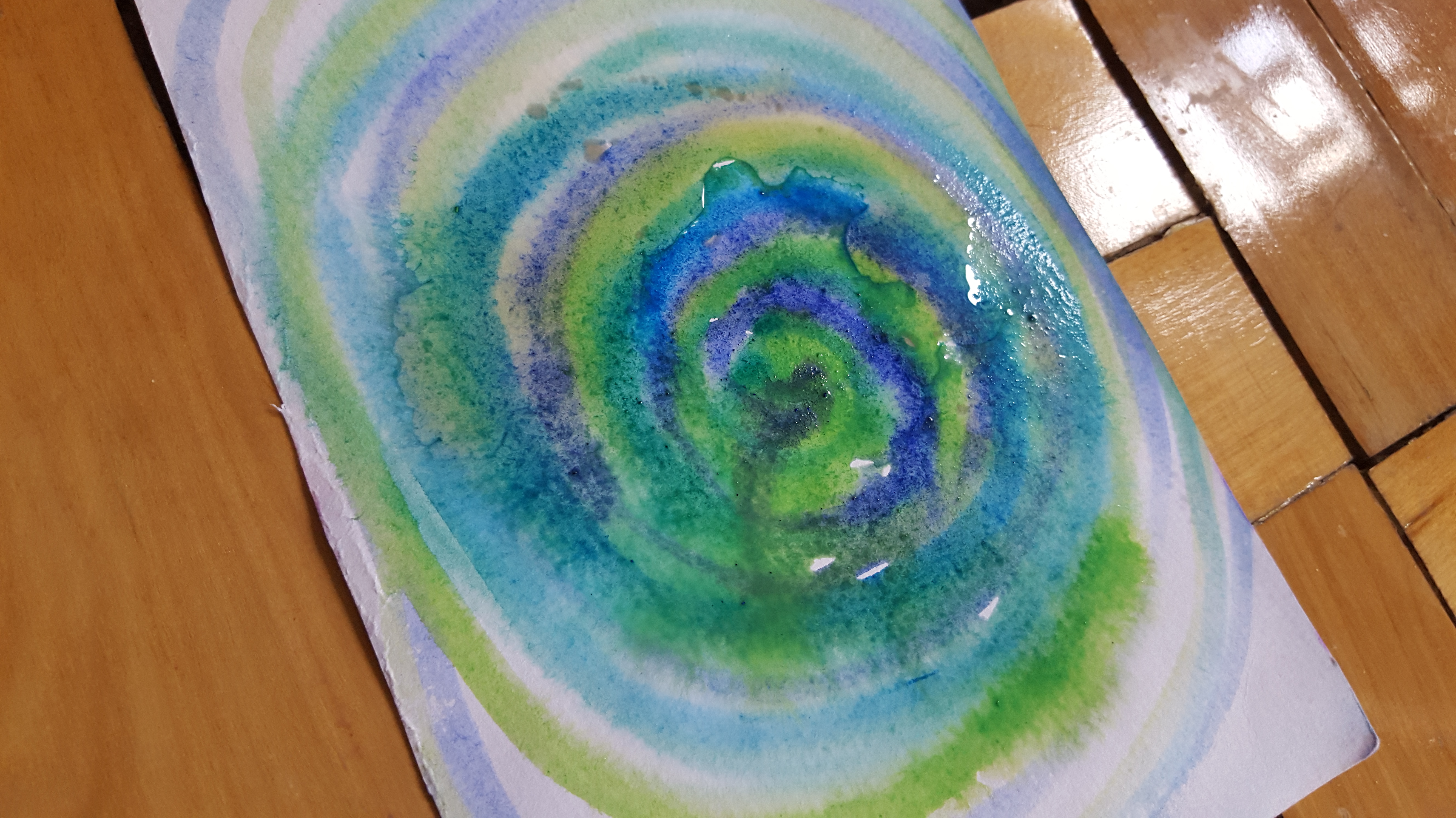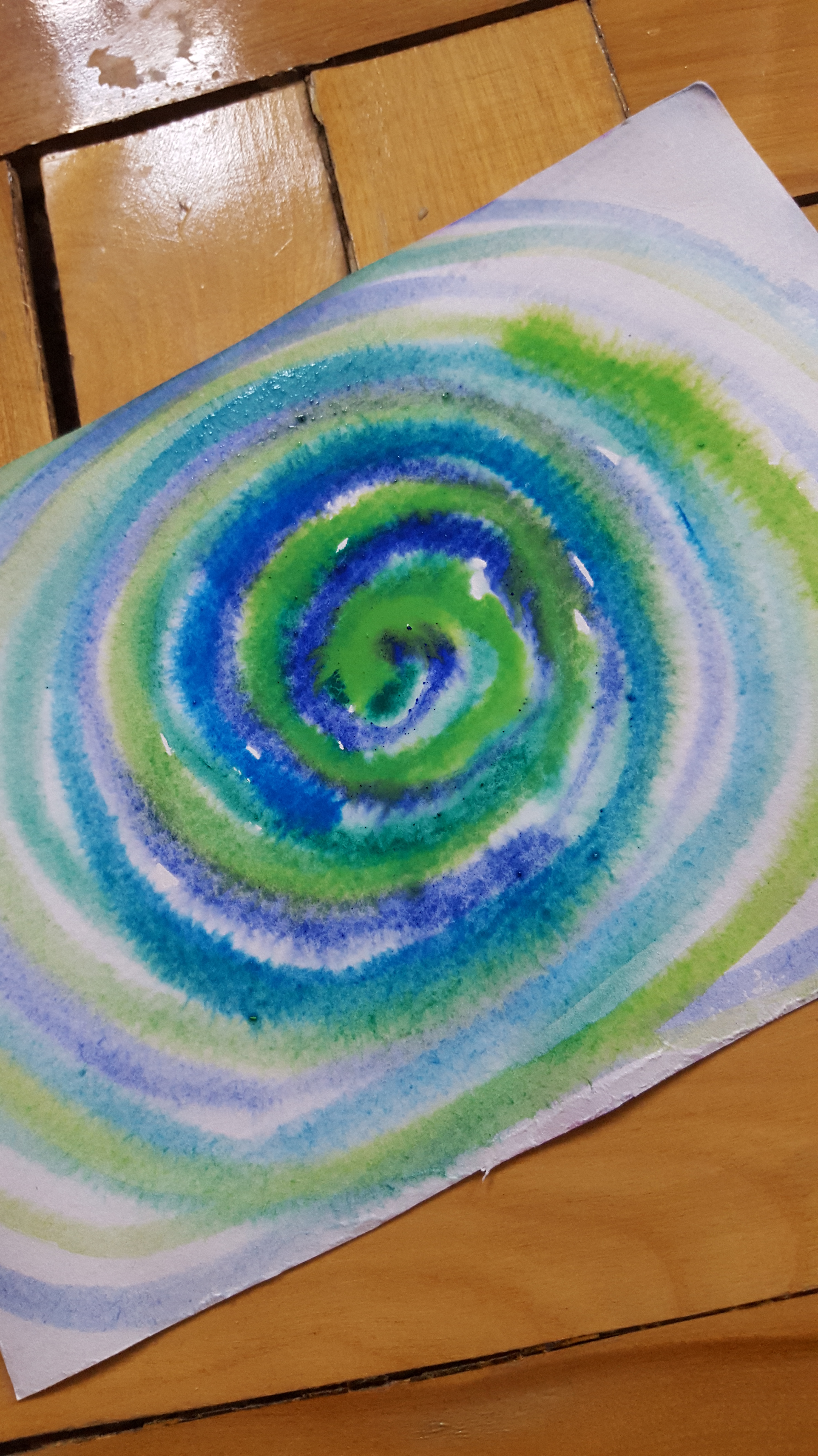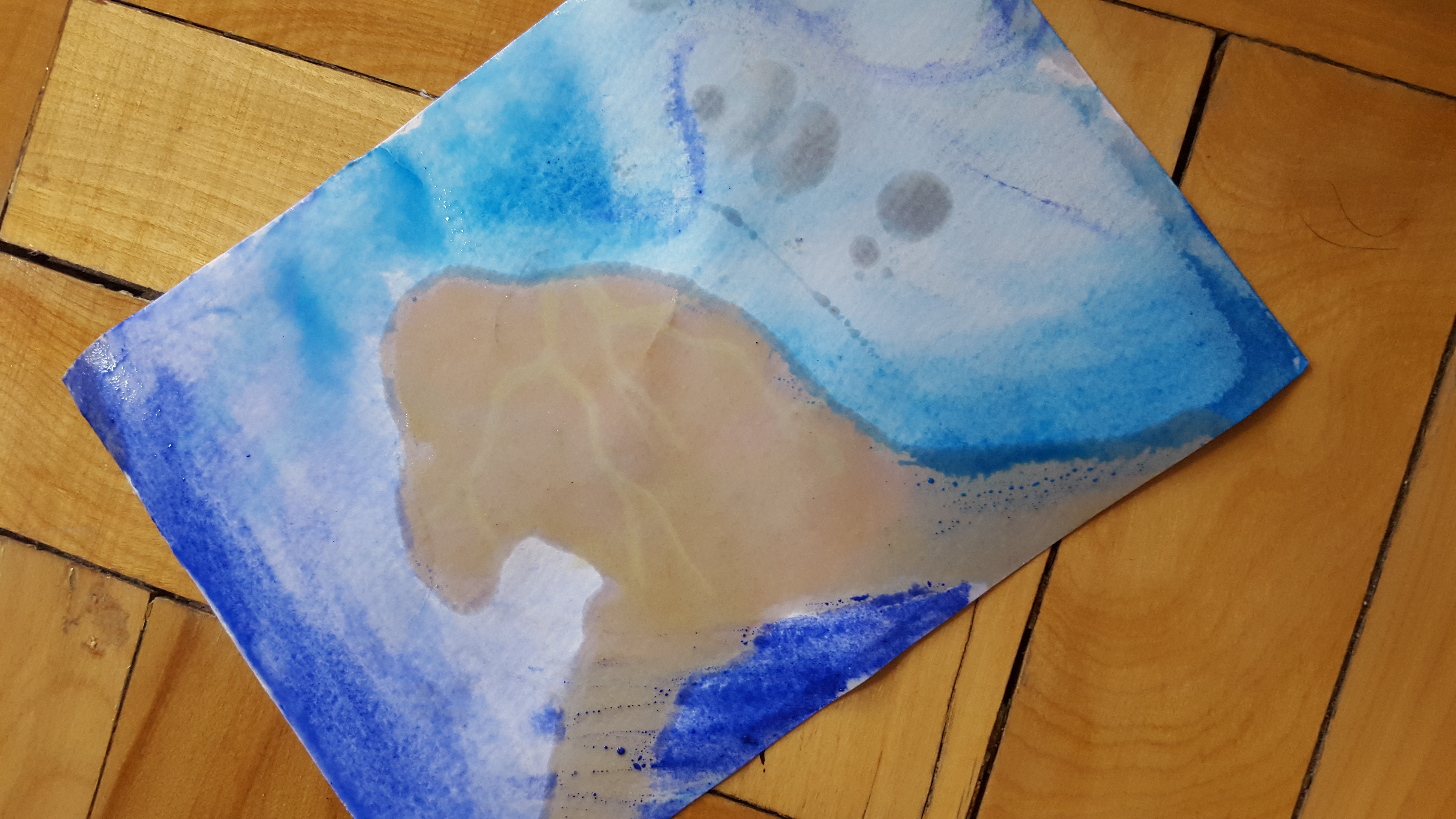 You can relate this to water supply by pretending that one color is “pollution” of some kind. You can also add other kinds of “pollution” to your paintings and see how the substances interact. Ink comes to mind. Or you could do salt paintings: