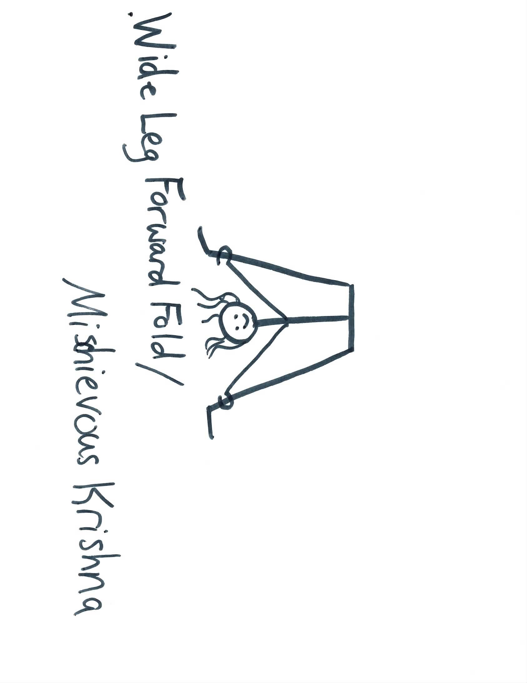 5. Krishna is a very mischievous little boy. (Wide Leg Forward Fold pose).